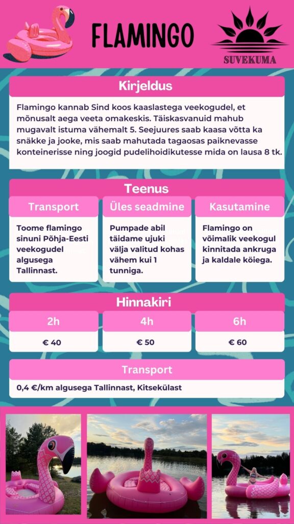 Flamingo on suur sõber kõigile igas vanuses ning sobib suurepäraselt kaaslaseks nii tüdrukuteõhtuks, lapse sünnipäevaks kui tavapäraseks suve nautimiseks.